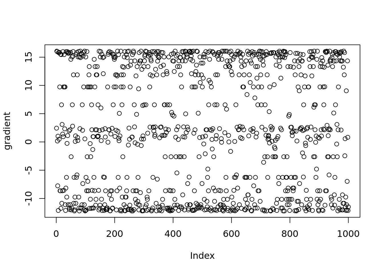 plot(vebpm:::f_obj_grad(out$output[[1]]$fitted_model$penalty_inversion$fit$optim_fit$par,out$sim_data$X[1,],out$output[[1]]$fitted_model$penalty_inversion$fitted_g$sd)[1033],ylab='gradient')