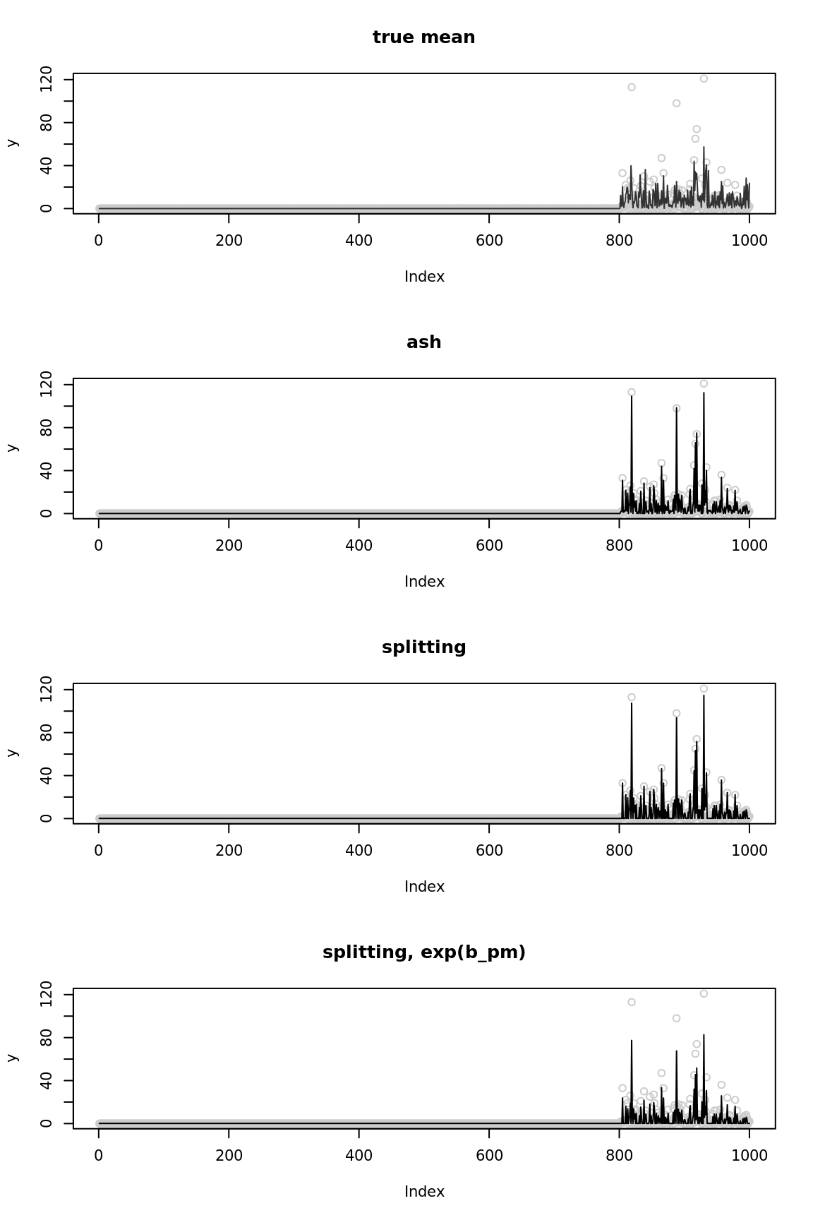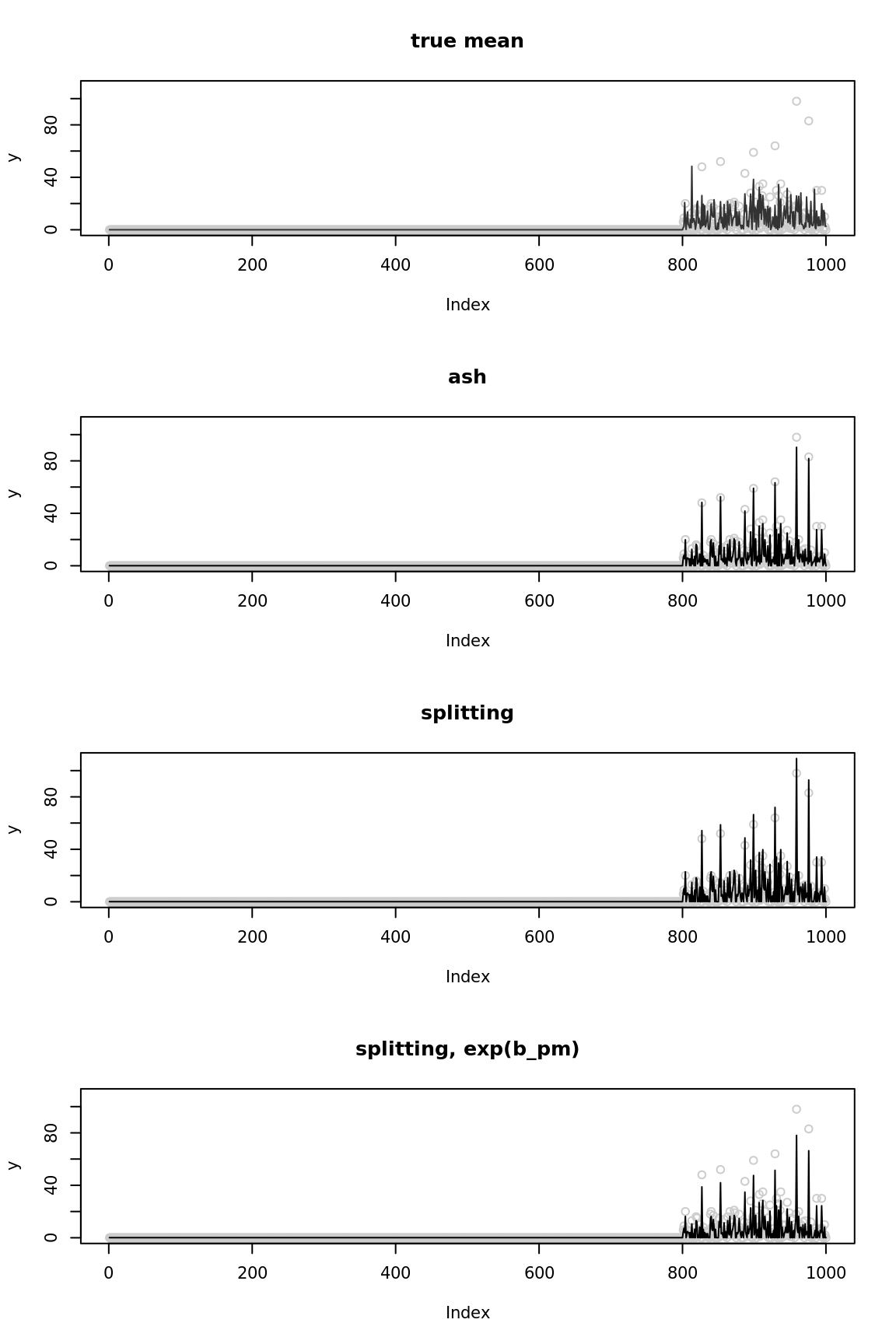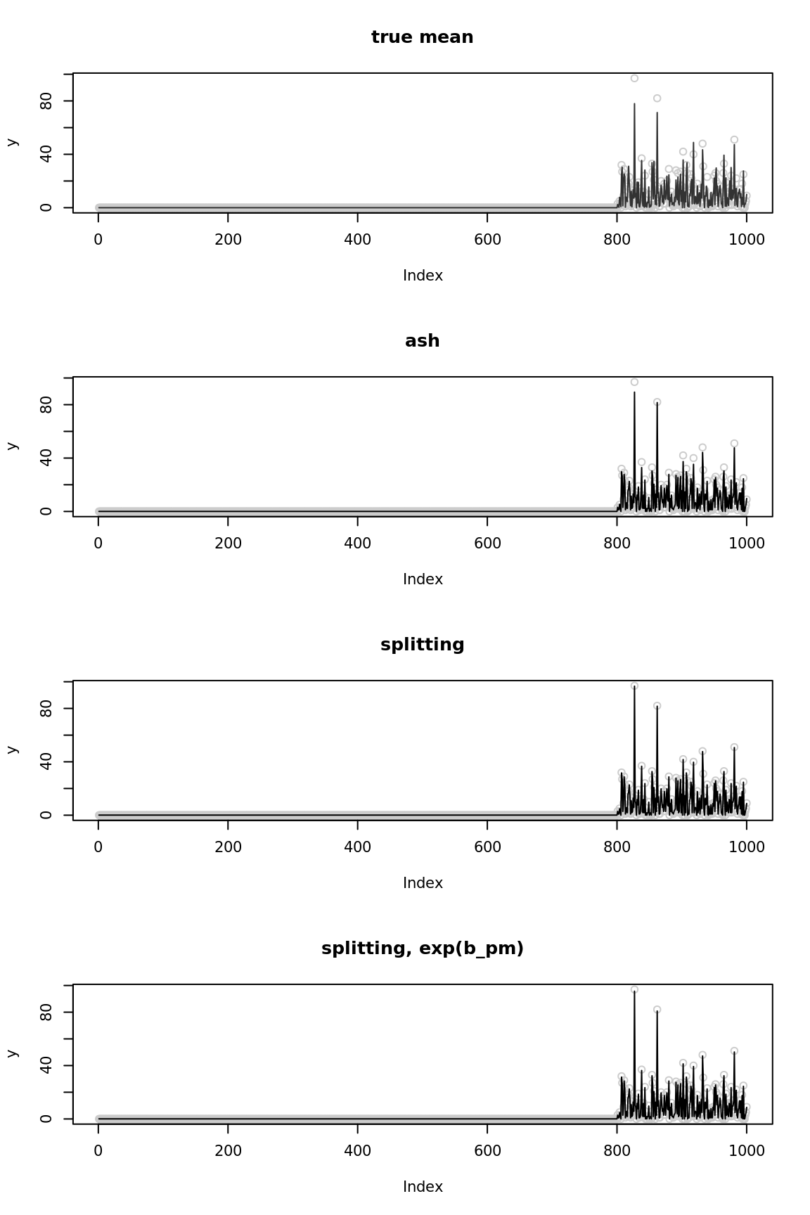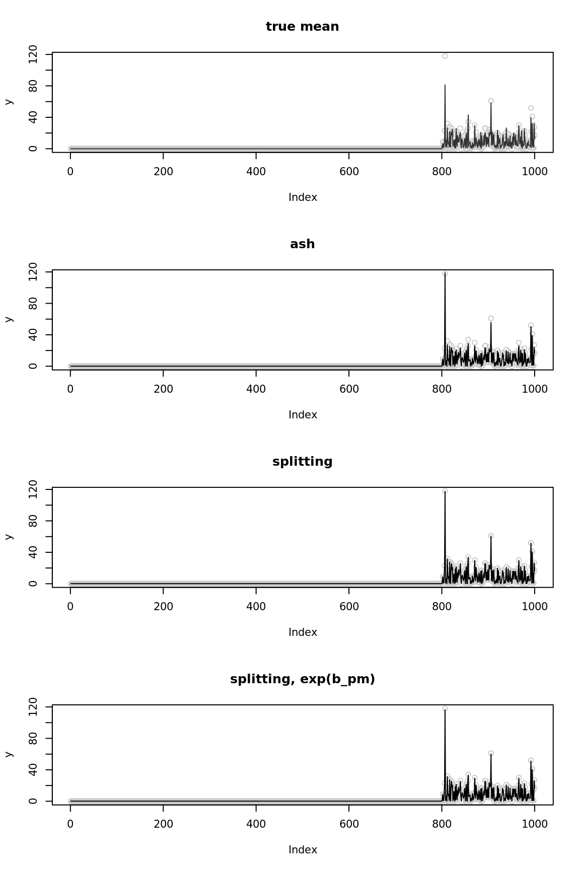 ylim = range(c(y,lambda,fit_split_ash_init$posterior$mean_exp_b,exp(fit_split_ash_init$posterior$mean_b)))