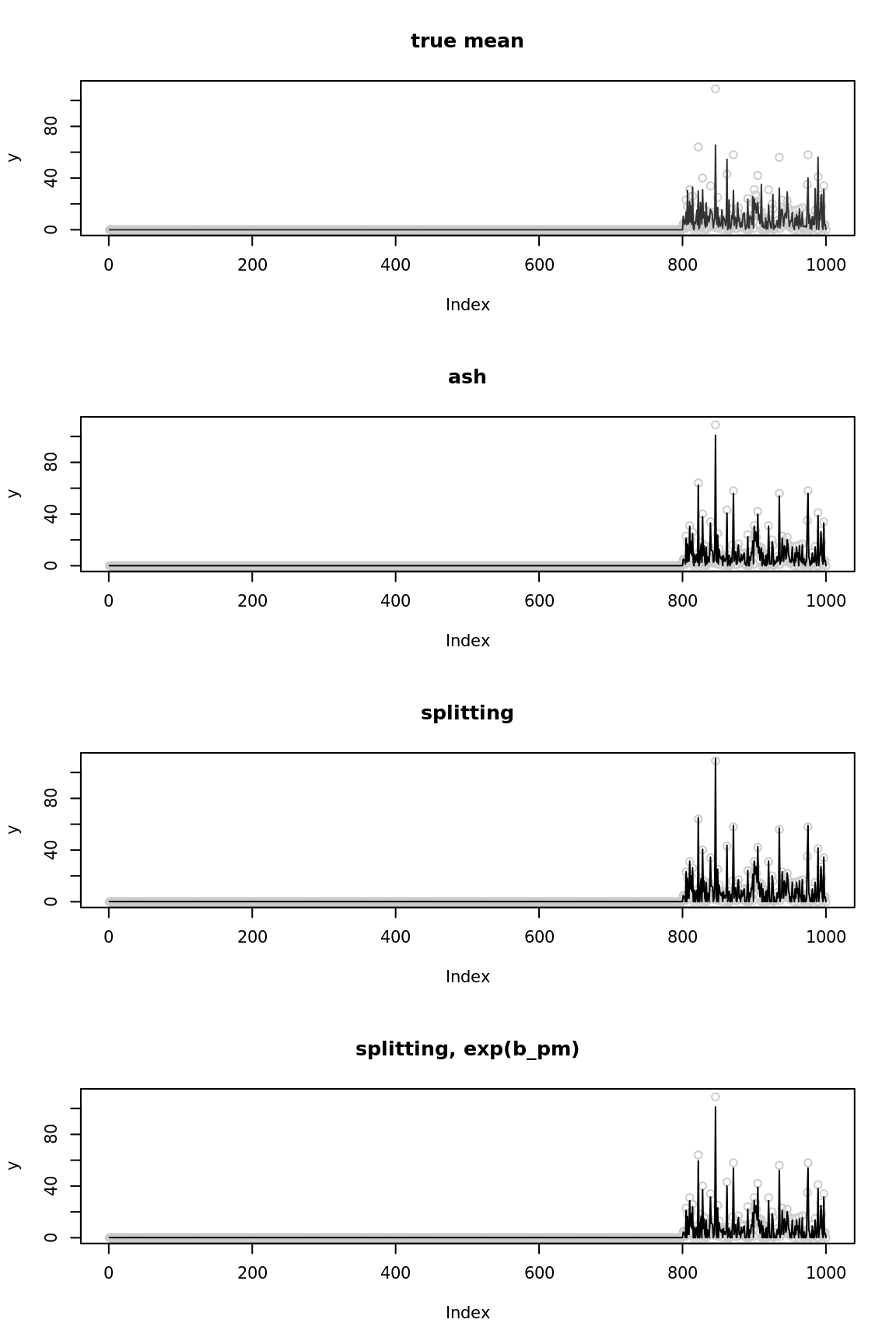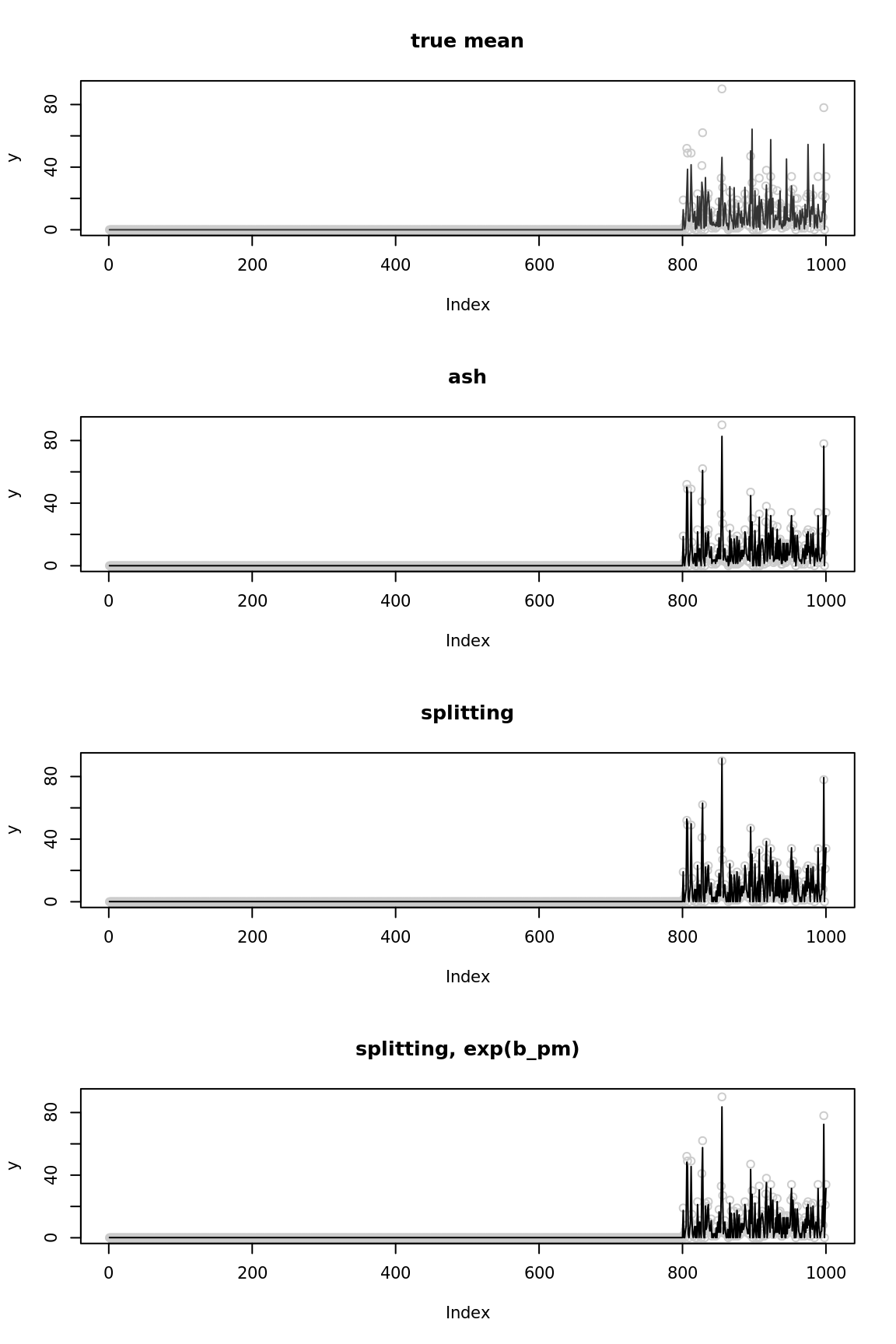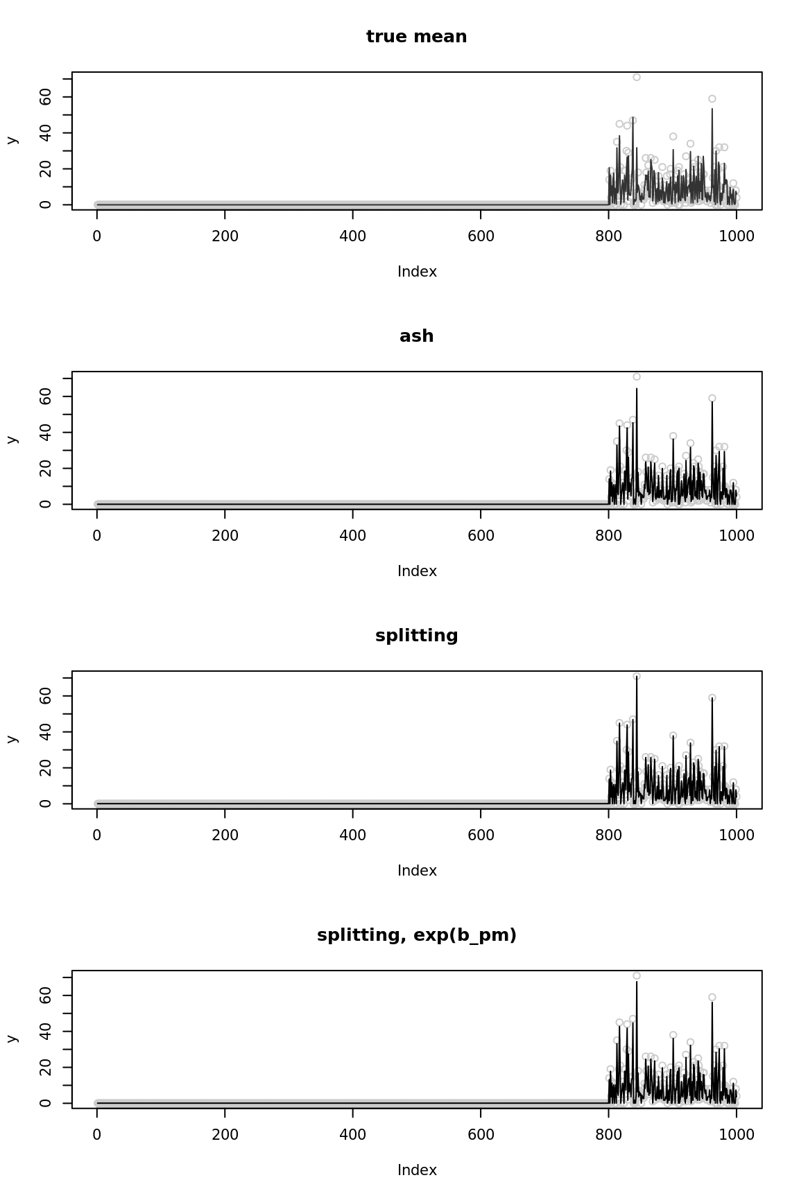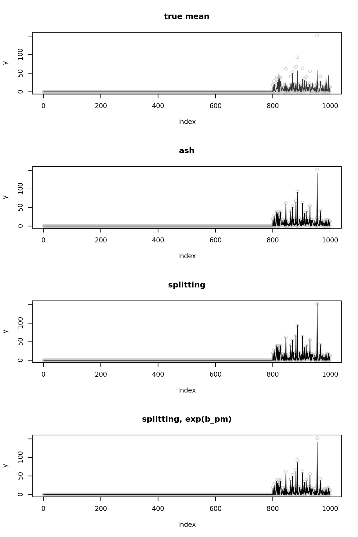 ylim = range(c(y,lambda,fit_split_ash_init$posterior$mean_exp_b,exp(fit_split_ash_init$posterior$mean_b)))